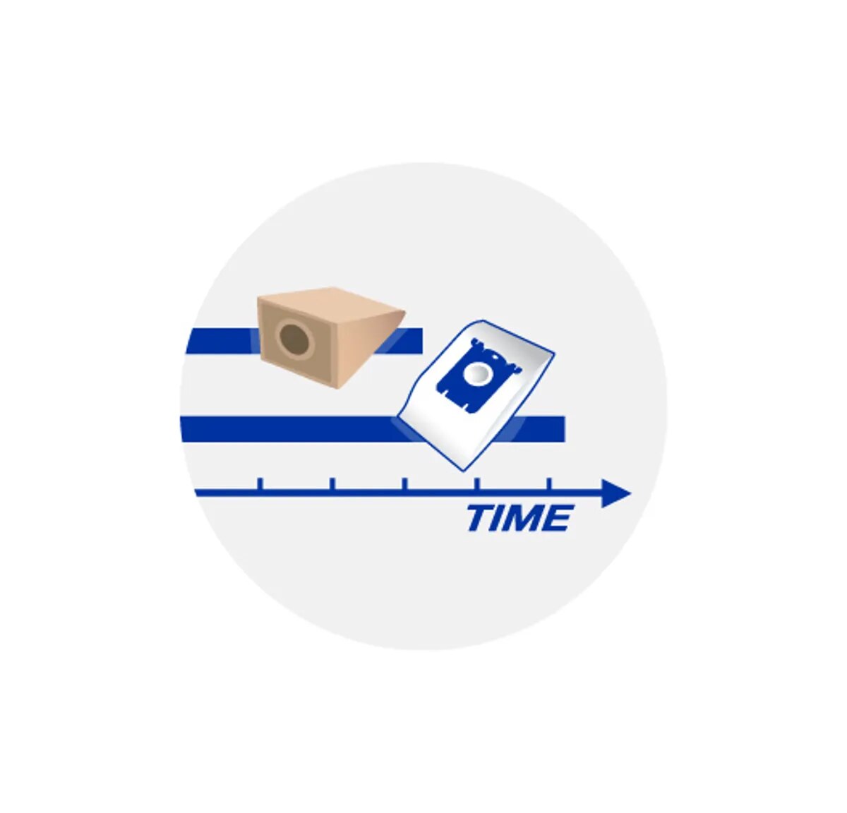 Synthetic DURAFLOW™ Fresh dust bags have up to 50% longer usage life than normal paper dust bags. This is due to the structure of the material which provides the bag with improved dust holding capacity and at the same time enables constantly high suction power as the bag fills up.