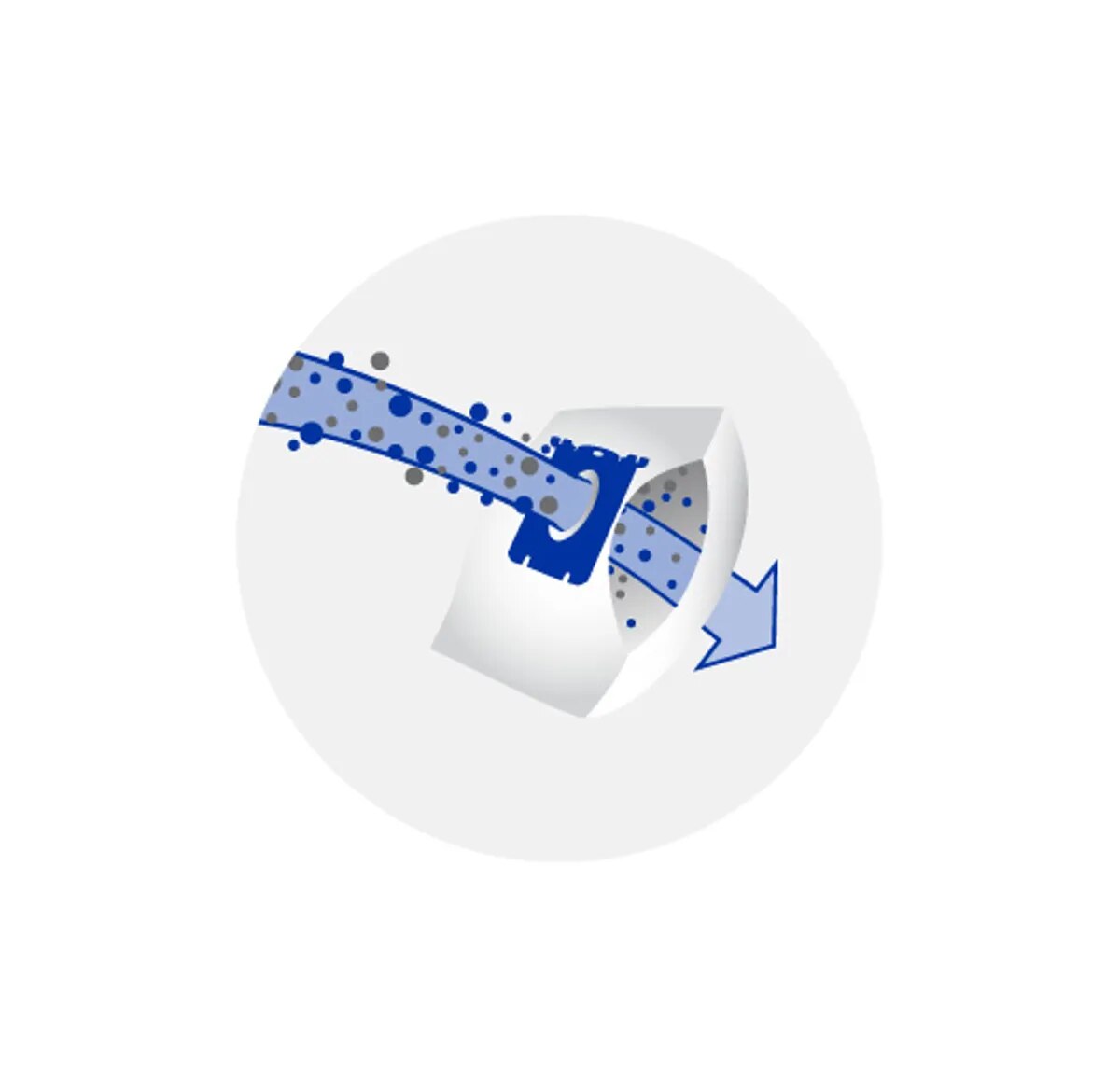 Thanks to the DURAFLOW™ Fresh material, bad odours are removed and the dust bag stays fresh longer.